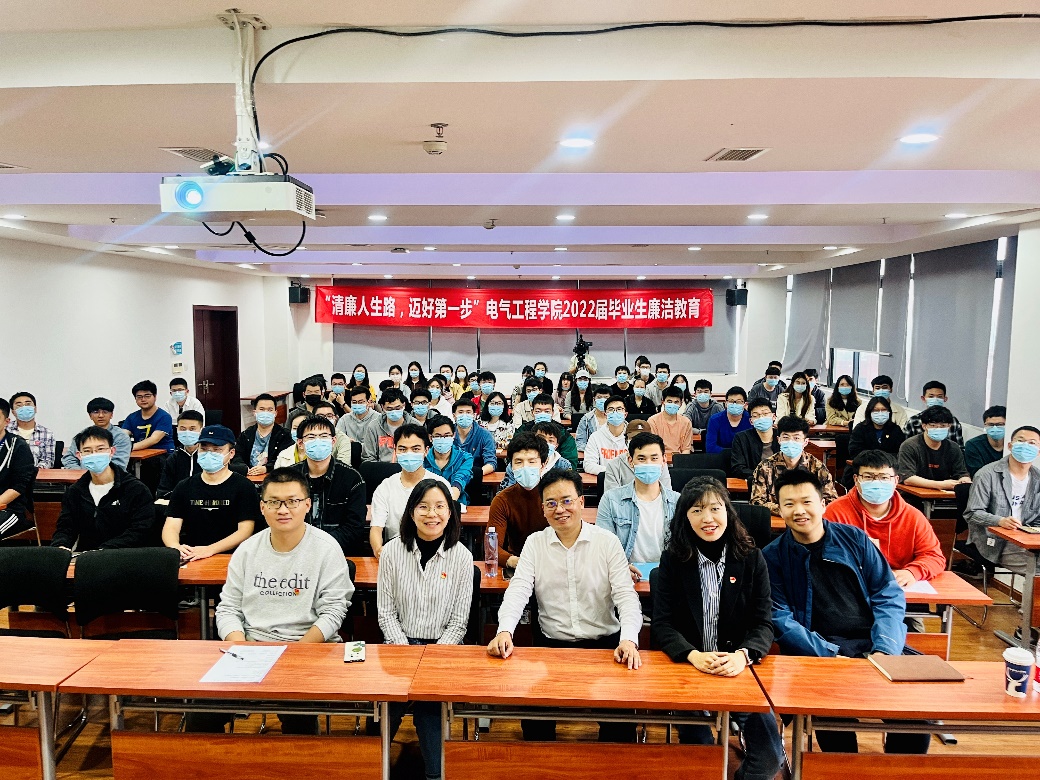 2022年4月14日下午14:30,学校党委副书记、纪委书记张学龙在犀浦校区电气馆X10832为awc777万象城娱乐官网2022届毕业年级学生党员代表讲授《清廉人生路,迈好第一步》专题党课。党课由学院党委副书记谢力主持。