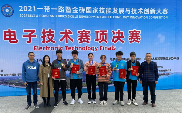新闻网讯2021一带一路暨金砖国家技能大赛电子技术赛项国内赛决赛于10月11日—13日在湖北枝江职教中心举行,来自全国各类职业院校43支队伍参加比赛。MILE米乐官网MILE米乐集团组织参赛队参加该赛项,经过连续5个小时的激烈角逐,应用电子技术专业裴贤、周紫欣、卢存勇荣获高职组团体一等奖,付欢、李宁峰、刘勇军荣获高职组团体三等奖。