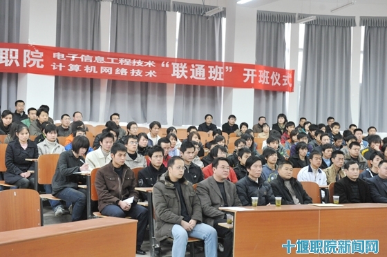 在下午4点举行的开班仪式上,中国联通十堰分公司总经理张伟文为“联通班”的60名同学介绍了联通公司的概况及十堰分公司的发展前景,他说,随着联通公司事业的不断发展,公司需要大量的人才,与有着优秀高职办学经验的十堰职院建立校企合作,开展“订单式”培养,实现优势互补,是双方真诚合作、大胆创新的一种尝试。