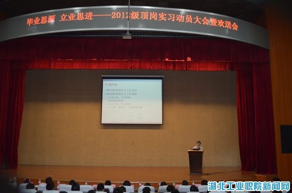 新闻网讯(通讯员 黄召阳65日下午14:30,信息与智能工程系校企共建专业在院会议中心举行以“毕业思源,立业思进”为主题的2012级学生顶岗实习动员大会暨欢送会。信息与智能工程系党总支书记莫足琴,校企共建专业主任陈方亦、副主任郑健、曹艳、肖海霞,及2012级的辅导员、教师,该系校企共建专业2012级全体学生参加了本次活动,会议由2012级辅导员曾娜老师主持。