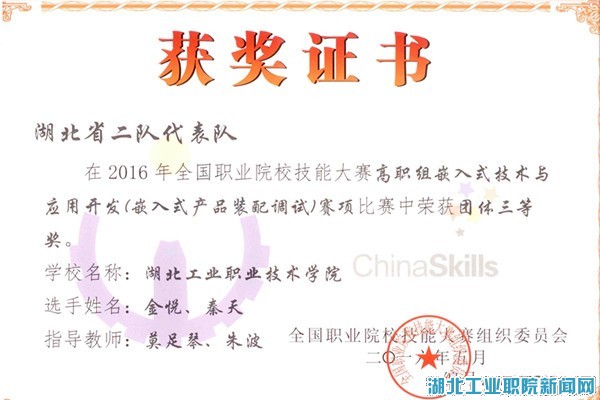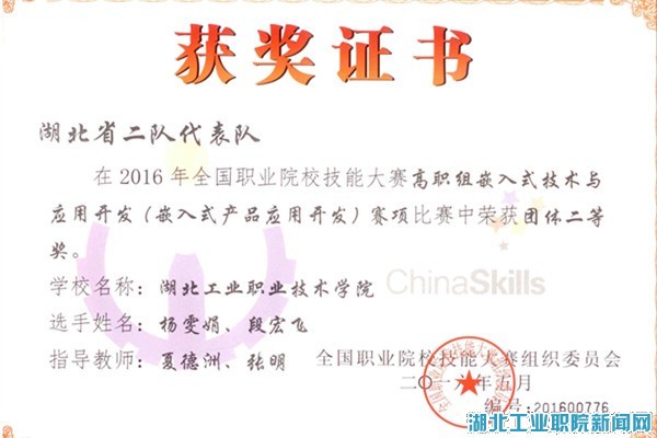 新闻网讯(通讯员 彭远)5月8日,经过长达8个小时紧张而持久的竞赛,在全国150多个参赛团队激烈角逐中,2016年全国职业院校技能大赛高职组“嵌入式技术与应用开发”赛项在天津落下帷幕,MILE米乐官网信息与智能工程系物联网应用技术专业杨雯娟、嵌入式技术与应用专业段宏飞两名同学获得“嵌入式产品应用开发”团体二等奖,物联网应用技术专业金悦、秦天两名同学获得“嵌入式产品装配调试”团体三等奖,成为湖北在该赛项本年度获奖级别最高、获奖项目全覆盖的唯一参赛院校。