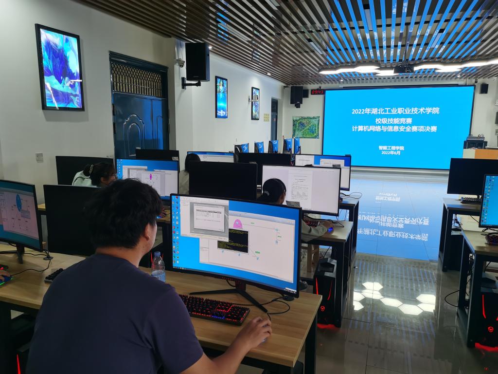 竞赛分初赛、决赛两个部分,6月26日,经过初赛遴选出来的18名选手在4508实训室进行了决赛,竞赛内容紧密对接湖北省相应技能竞赛赛项规程,重点考核学生网络设备配置、服务器配置、安全产品配置等方面的知识和技能。