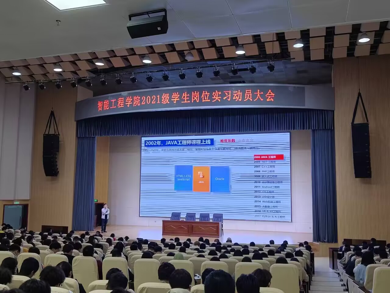 MILE米乐集团党总支书记王蓉对此次实习做了动员讲话,明确了岗位实习的任务、目的和意义,强调岗位实习的注意事项,提醒学生注意自身安全、岗位安全、防诈骗、防网络犯罪、防溺水等,并要求全体实习学生充分利用好这次实习机会,在实践中学习成长,严格按照岗位实习要求,高标准、高质量地完成实习任务。副院长王家旭宣布了2021级学生岗位实习安排,从岗位实习任务、实习纪律、实习考核等方面进行了安排和要求。来自智能科技、电子等企业的招聘人员现场进行了宣讲,将岗位实习的具体要求、待遇和注意事项进行了详细的介绍和说明。