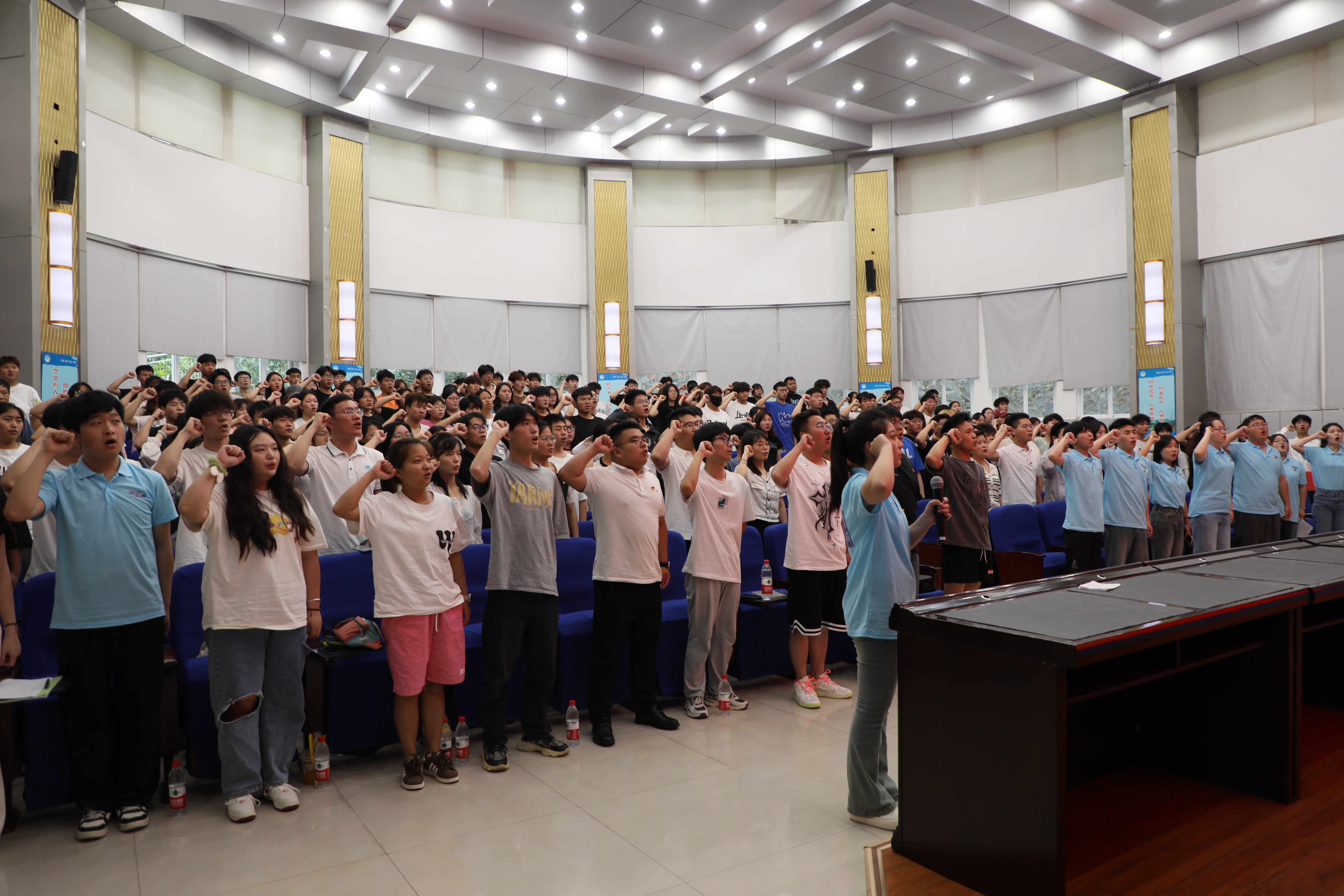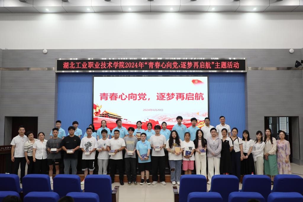 党委组织部毕老师、吕帅老师带领各二级学院学生支部书记及支委成员向学生党员赠送了精选书籍和笔记本,鼓励他们持续学习,丰富知识,进一步提升自身党性修养。最后,龚瑜、杨夕、李思琪等同学合唱了改编版的《星辰大海》,用歌声诠释了青年党员追逐梦想、勇往直前的精神风貌。