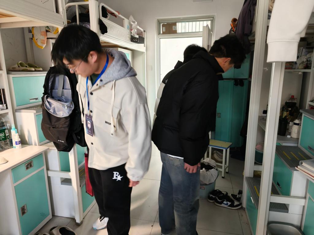 除了安全检查,师生之间的深入交流也是此次走访的重要环节。支委成员与同学们亲切交谈,详细询问他们在学习和生活中遇到的困难与问题。对于同学们反映的课程学习、社团活动、人际关系等方面的困惑,走访人员耐心倾听,并给予了针对性的建议和指导。学生党员鼓励同学们要树立正确的学习态度,积极参与校园活动,努力提升自身综合素质。