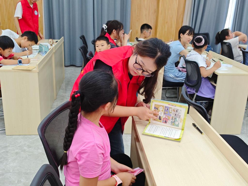 志愿者们根据孩子们的年级和学习情况,分组开展课业辅导,帮助孩子们梳理知识点,攻克学习难题。“在这里写作业,有不懂的地方马上就能问哥哥姐姐,学习效率都变高啦!” 一位小朋友开心地说道。家长们也纷纷表示,这样的辅导服务解决了他们的后顾之忧,让孩子在假期里能保持良好的学习状态。