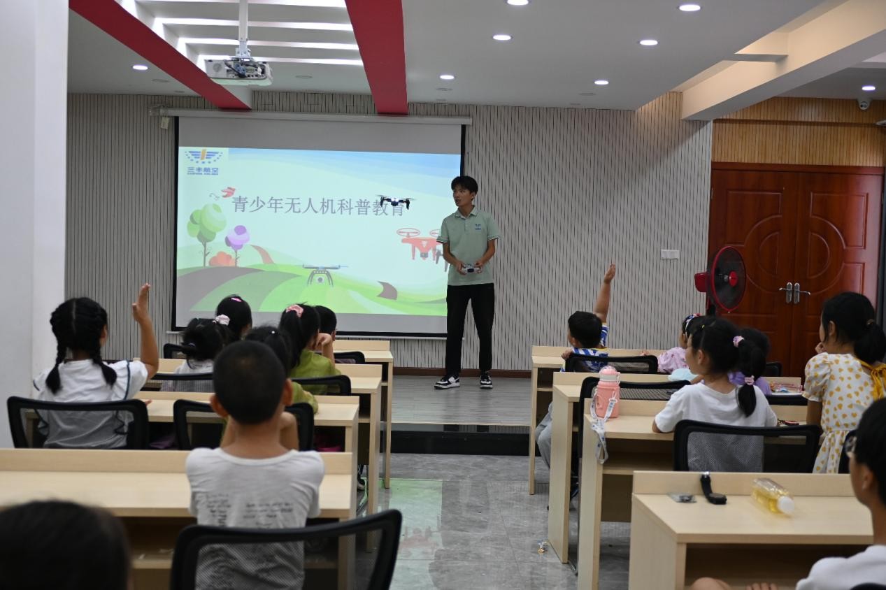 活动最后,孩子们围着老师踊跃提问:“无人机能在下雨天飞吗?”“最长能飞多久?”“以后能自己组装无人机吗?”老师一一耐心解答,并鼓励大家只要保持好奇,多动手多思考,以后一定能设计出更棒的无人机!