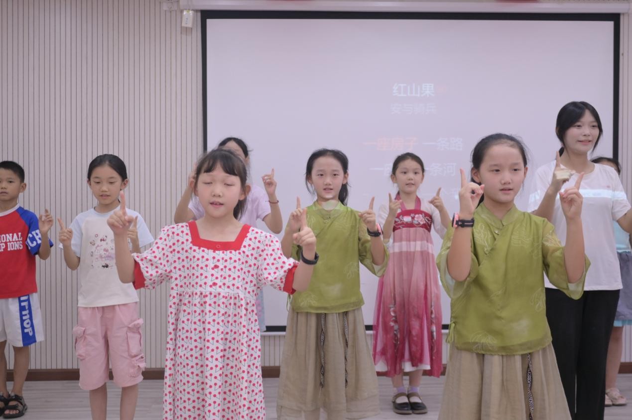 随后,孩子们带来了精心准备的汇报演出——《红山果》手语舞。伴随着轻快的旋律,孩子们用稚嫩的手势比划着童真与感恩,每一个动作都充满了对志愿者老师的依恋与不舍。灵动的身影、真挚的情感,赢得了在场所有人的阵阵掌声,成为仪式上最动人的风景。