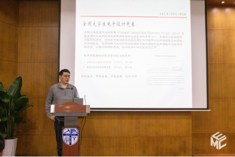 颁奖仪式结束后,董金文老师为同学们详细地介绍了电子设计大赛的情况。董金文老师讲述了竞赛的规则,时间和特点并提供了相应的建议,他举出近几年的科创赛事和人物事例让同学们增加了解,同学们都受益匪浅。最后董金文鼓励同学们踊跃参与科创赛事,并为同学们提供了参赛方法。
