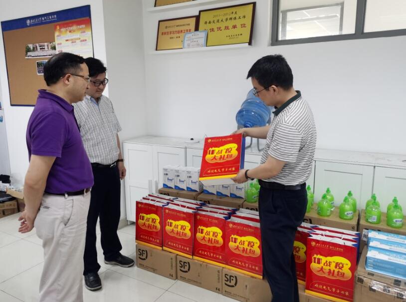 罗乾超认真检查了防疫物资的准备情况,强调要根据学校的部署认真开展工作。在查看为返校电气学子准备的装有疫情防控物资的“战‘疫’大礼包”后,罗乾超指出,学院切实保障疫情防控物资经费,多渠道协调准备防疫物资,保证疫情防控物资充足。