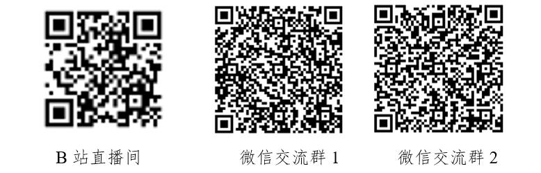 视频网络会议采取直播和微信群互动相结合的形式。通过B站(哔哩哔哩)直播,网站内搜索“电工技术学会青工委”或通过网址进入直播间https://live.bilibili.com/22192289。参会人员提前通过扫描以下二维码进入会议互动微信群参与直播和线下讨论。