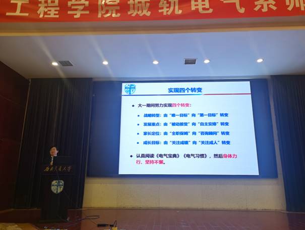 2020年11月2日19时30分,awc777万象城娱乐官网城轨电气系师生见面会在峨眉校区扬华讲堂召开。见面会由学院党委副书记张春燕主持,陈维荣院长、罗乾超书记出席见面会,学院党委副书记陈勇、团委书记谢力、教师服务中心主任王轶、城轨电气系副主任刘承志,潘育山,黄小红、系办公室主任刘仕兵、学工组辅导员、各班班导师和近三百名同学参加见面会。