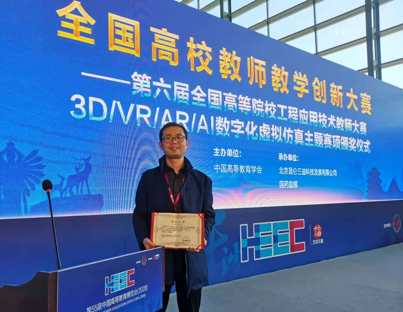 此次大赛是中国高等教育学会举办的面向全国高校教师提升3D/VR/AR数字化虚拟仿真应用技术能力、推进3D/VR/AR数字化虚拟仿真课堂教学与实验实践教学改革和创新能力的主题赛项。大赛鼓励运用虚拟仿真化和网络互联化的全新方式和现代手段创新教育模式,获奖团队教师在今年疫情期间进行了虚拟仿真实验的教学改革和实践,取得了良好的教学效果。