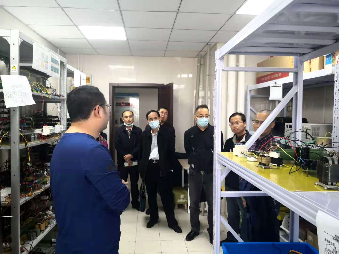 沈副总工一行先参观了接触网、无线传能、机器人、工业电子变压器、综自检测、贯通供电等相关实验室。