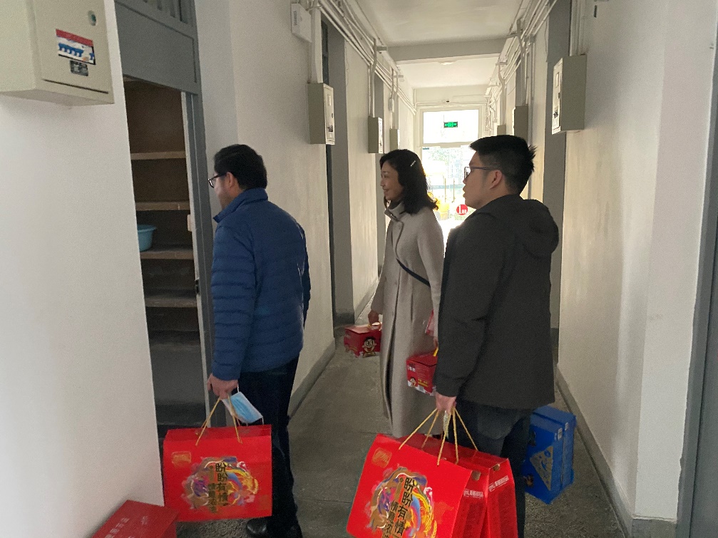 2021年2月9日(农历腊月廿八)上午,罗乾超书记前往犀浦校区鸿哲斋、九里校区眷诚斋学生公寓,走访慰问awc777万象城娱乐官网春节 留校学生,送上了新春祝福和年货。学院党委副书记谢力、辅导员王喆桅、李诗涵、关怀一同随行。