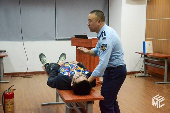 随后,何文平教官为师生开展实验室消防安全及心肺复苏培训。何文平通过播放视频案例强调消防安全的重要性,列举实验室常见的安全隐患,如配套设施陈旧,线路老化;乱设防护门窗,阻塞安全通道等。火灾事故发生多为人为原因,忘关电源使设备通电时间过长、温度过高引起火灾;操作不慎,使火源接触易燃物质引起火灾;供电线超负荷,线路发热引起火灾;乱扔烟头,点燃易燃物引起火灾。何文平邀请老师同学参与灭火器演练,生动地演示了灭火器的使用方法“提拔握压”;在讲解心肺复苏相关知识的过程中,何文平邀请同学上台学习,让同学们印象深刻。最后何文平告诫师生:“安全无小事。”希望大家都能够提高消防意识、注意消防安全。