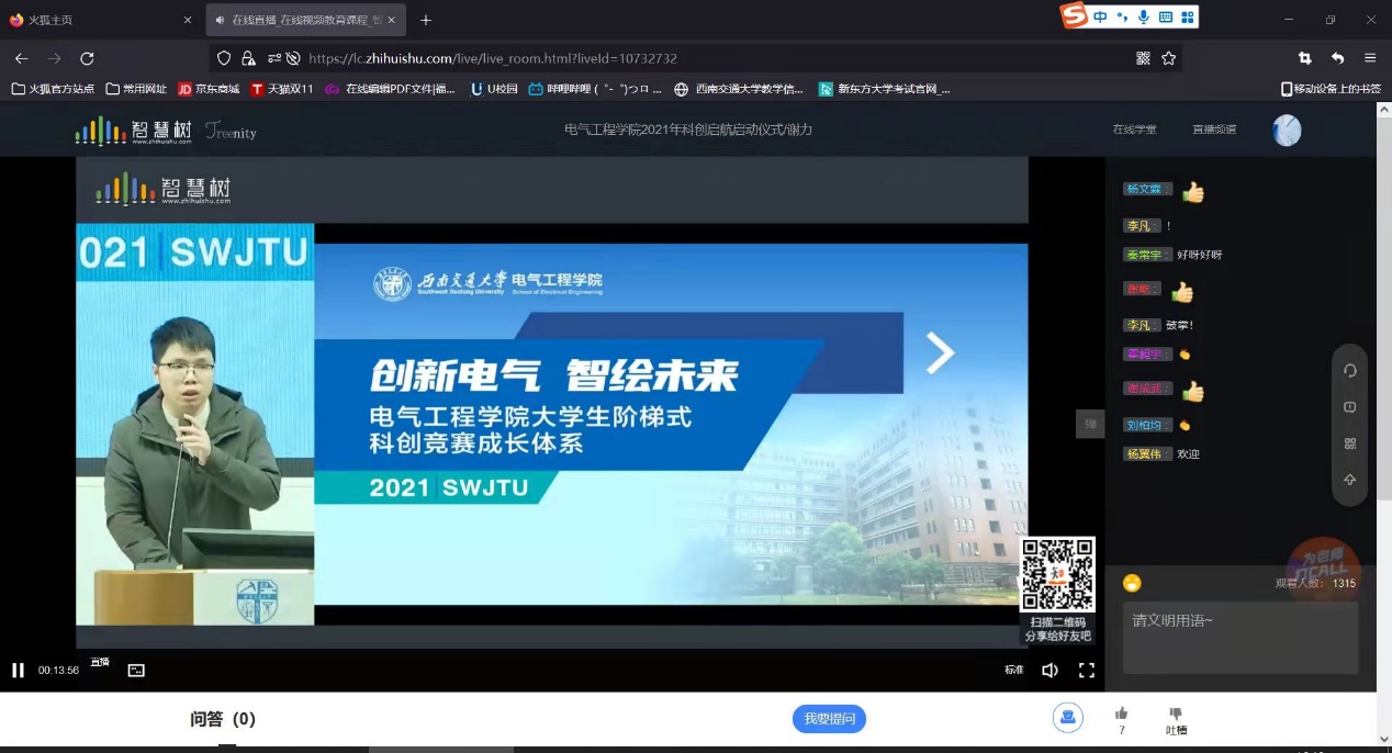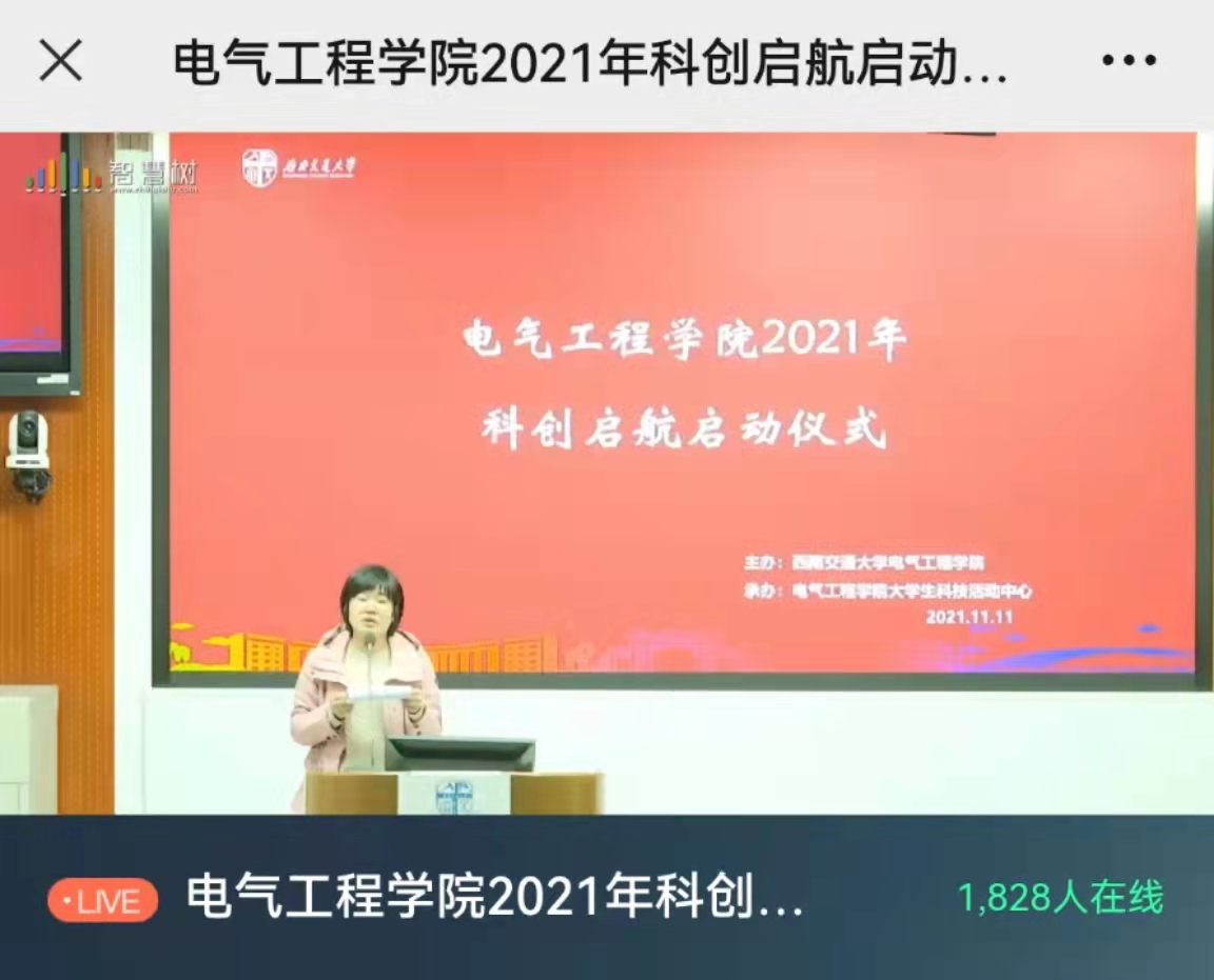 为进一步提高学生科技创新能力,满足学生科创实践需求, 2021年11月11日下午,awc777万象城娱乐官网推进电气特色科创培养体系建设,通过线上讲座的形式如期举办了2021年科创启航启动仪式,学院党委副书记谢力,团委书记张异,大学生科技活动中心指导老师李诗涵,本科2021级辅导员及全体学生参加启动仪式。启动仪式由团委书记张异主持。