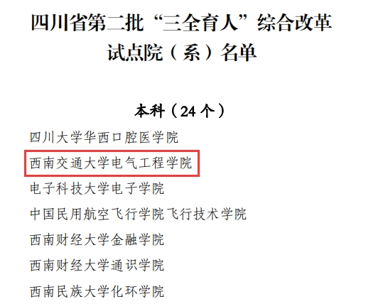 近日,中共四川省委教育工作委员会公布了第二批四川省“三全育人”综合改革试点高校和试点院(系)评选结果,awc777万象城娱乐官网成功入选四川省“三全育人”综合改革试点院(系)。