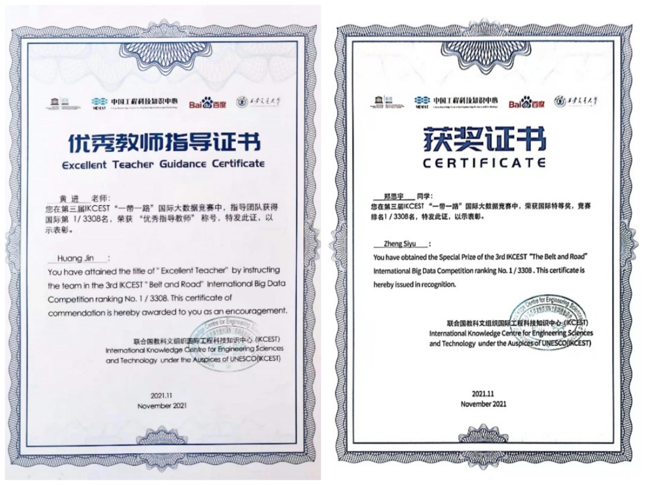 喜报|学院黄进老师带队在“第三届IKCEST'一带一路'国际大数据竞赛”中勇夺国际特等奖