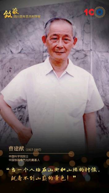活动共遴选出120名致敬代表,其中,院士代表人选99人,除院士外的代表人选21人。他们或专注于科技兴川的征途上努力奋进,长期致力于四川强省经济建设;或在促进物质生活丰富发展、保障和提高人民生活水平方面有卓越成果;或专注于为国家硬实力建设提供不竭动力;或专注于治理与基础学科发展和学科研究,为未来科学技术发展起到奠基作用……我院曹建猷教授、任朗教授和钱清泉教授入选,他们为我国轨道交通事业作出了卓著贡献,是当之无愧的四川百年科技“最亮的星”。