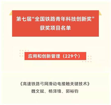 近日,由全国铁道团委、科技和信息化部、劳动和卫生部、川藏铁路工程建设指挥部办公室、中国铁道学会、铁路青少年发展捐助中心联合举办的第七届“全国铁路青年科技创新奖”获奖名单出炉。