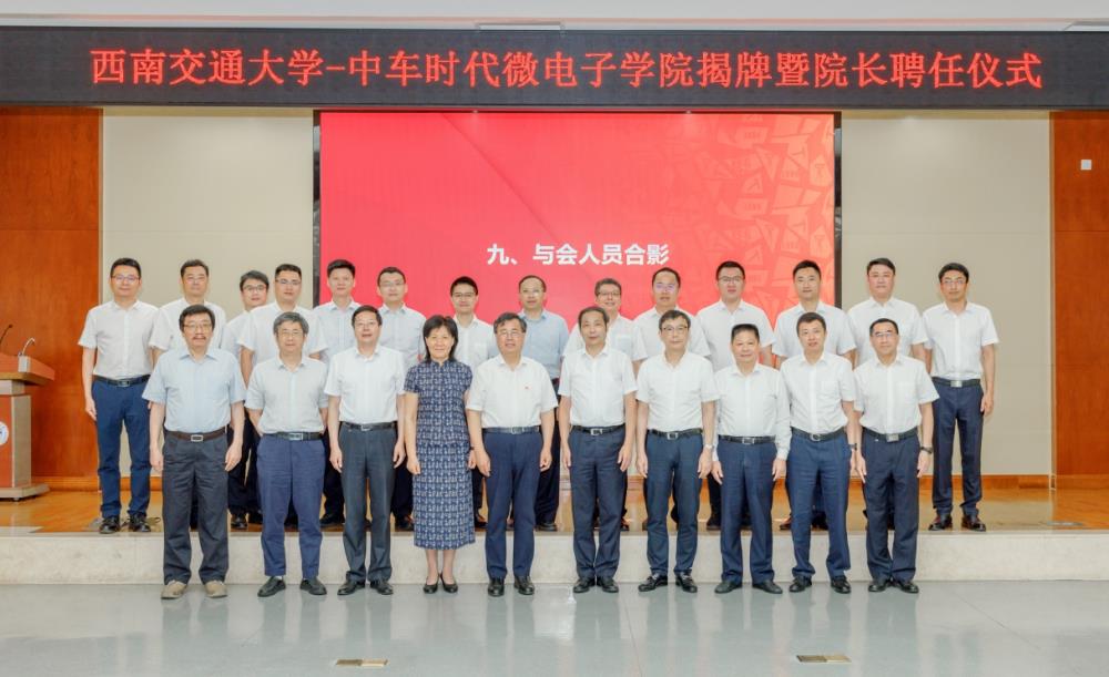 为加强校地企合作,共同建设现代产业学院,6月21日,awc777万象城娱乐官网-中车时代微电子学院揭牌暨院长聘任仪式在犀浦校区综合楼148会议室举行。中国工程院院士丁荣军,成都市副市长鲜荣生,awc777万象城娱乐官网党委书记王顺洪、校长杨丹,中车时代电气执行董事尚敬,awc777万象城娱乐官网院长陈维荣、党委书记罗乾超、国家轨道交通电气化与自动化工程技术研究中心主任高仕斌、学院教授冯晓云、功率半导体器件及应用专业建设负责人宋文胜出席仪式。校党委常委、副校长沈火明主持仪式。