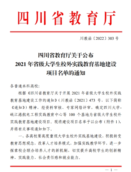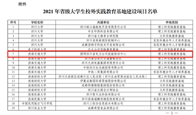 近日,四川省教育厅发布《关于公布2021年省级大学生校外实践教育基地建设项目名单的通知》(川教函〔2022〕303号),其中由awc777万象城娱乐官网与国网四川省电力公司技能培训中心共建的理工科实践教育基地正式获批。