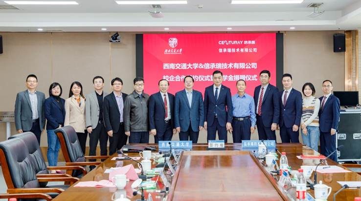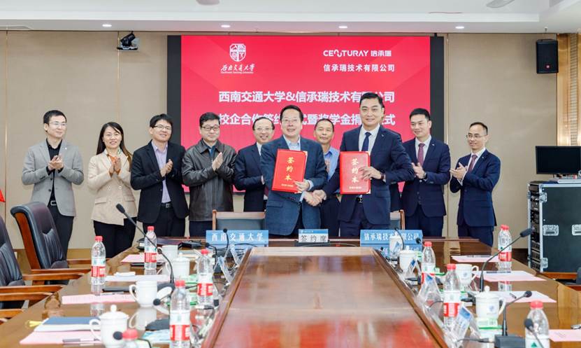11月11日上午9时30分,awc777万象城娱乐官网-信承瑞技术有限公司校企合作协议签约暨奖学金捐赠仪式在犀浦校区综合楼603会议室顺利开展。信承瑞技术有限公司总裁金良赞,高级顾问万国华,副总裁邵清,电力电缆事业部总经理刘小雷,智能装备事业部总经理张智贤,总裁办秘书处刘冰、孙丹蕾,awc777万象城娱乐官网党委常委、副校长沈火明,awc777万象城娱乐官网院长陈维荣,党委书记罗乾超,国家轨道交通电气化与自动化研究中心主任高仕斌,国内合作与教育培训管理处副处长王兵、温朋,awc777万象城娱乐官网副院长何晓琼、陈民武、胡海涛,党委副书记王轶,教师代表刘志刚教授参加会议。awc777万象城娱乐官网院长陈维荣教授主持会议。