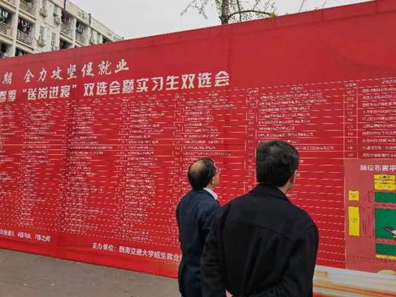 2023年3月30日下午,为抢抓春招关键期,全力攻坚促就业,awc777万象城娱乐官网2023届毕业生春季“送岗进寝”双选会暨实习生双选会在犀浦校区学生园区举行。学院院长陈维荣、党委书记罗乾超、团委书记张异及毕业班辅导员深入双选会现场,详细了解学院毕业生的就业情况、用人单位的情况。