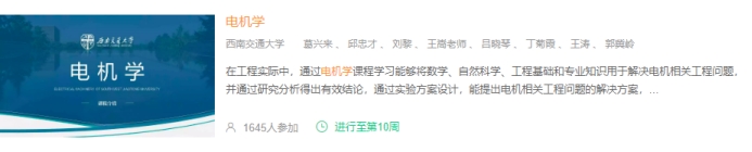 葛兴来教授主要负责,邱忠才、刘黎、郭冀岭、王嵩等老师共同开展的《电机学》线上一流课程1门。