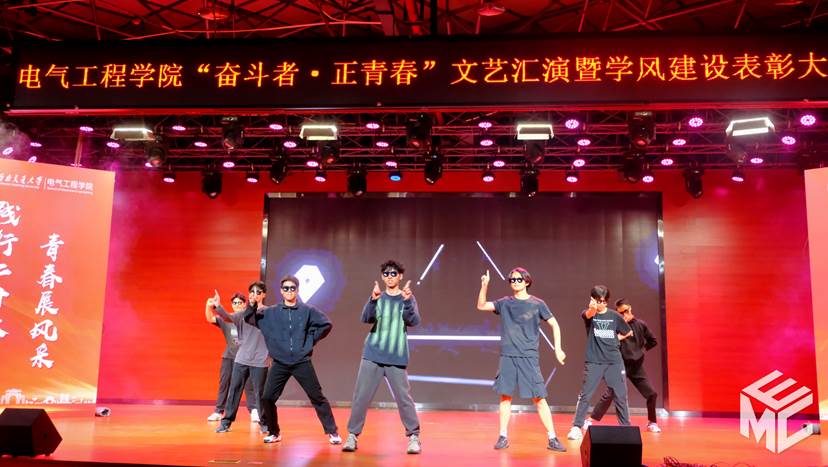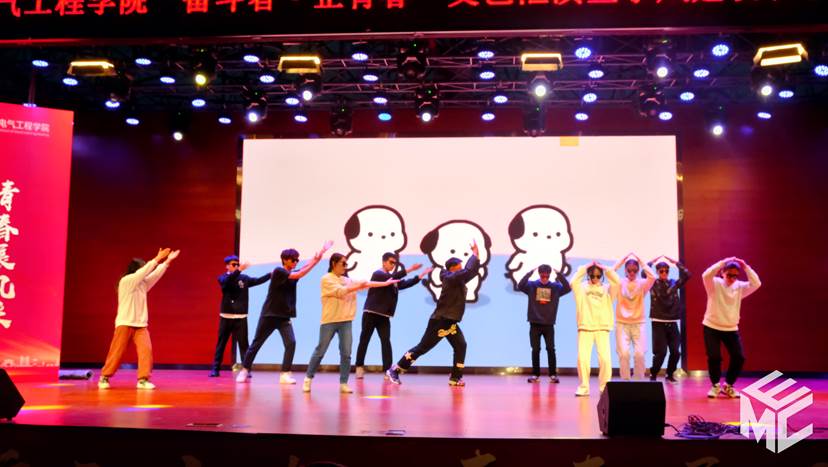 紧接着是电气茅班的舞蹈《青春旋律》。舞者们轻快的身姿,勾勒出青春的多彩。在充满律动的音乐中,观众们充分感受到了他们的阳光向上,欢快的气氛遍布整个会场,将晚会推向了另一个高潮。