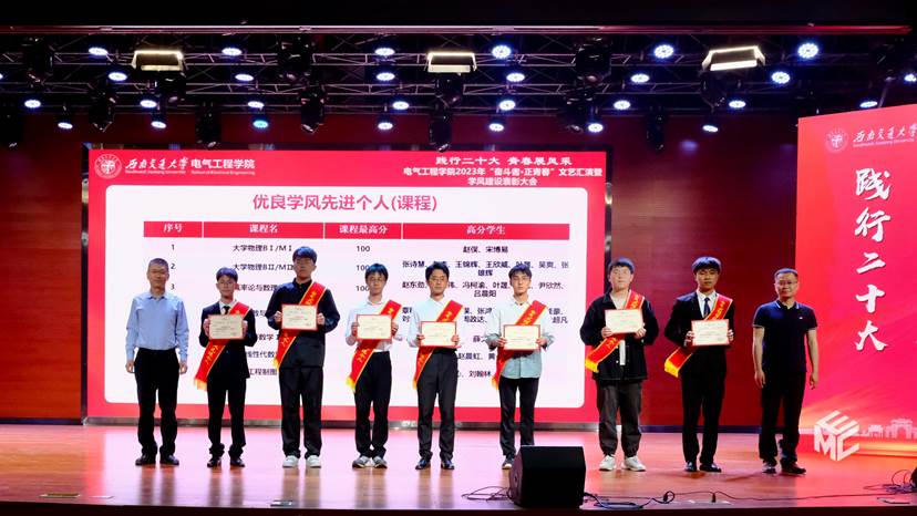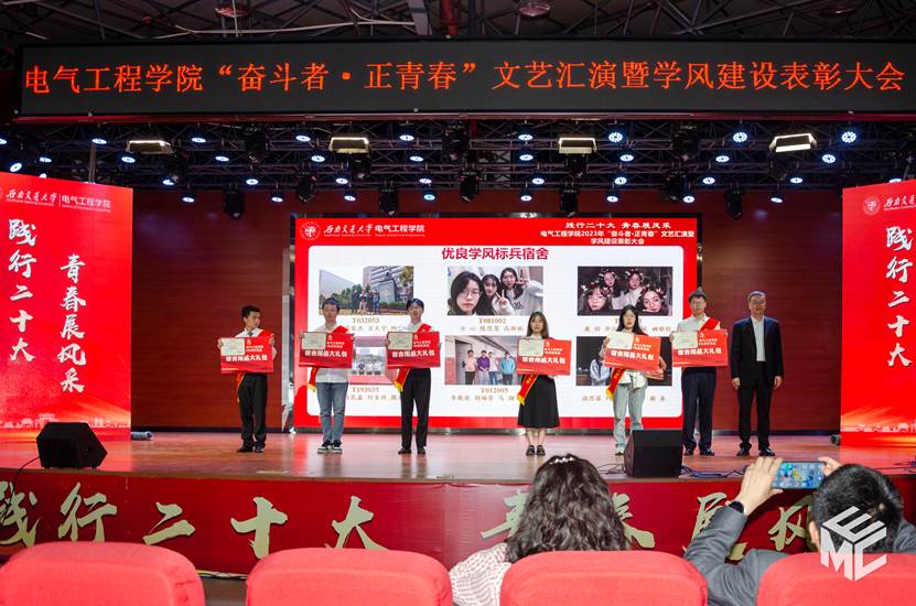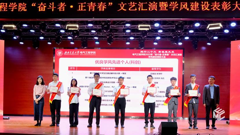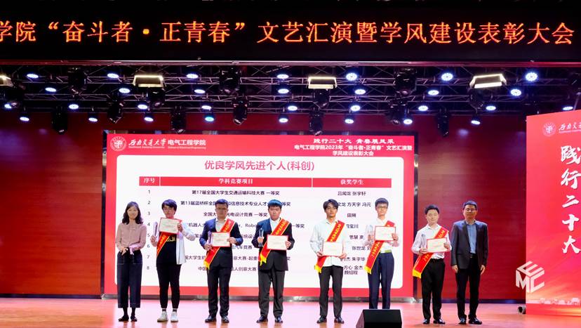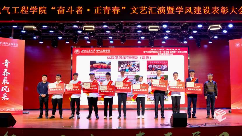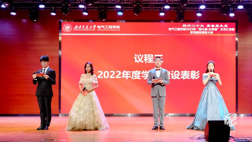 4月22日晚7点整,awc777万象城娱乐官网“奋斗者·正青春”文艺汇演暨学风建设表彰大会在犀浦校区二食堂三楼如期举行。awc777万象城娱乐官网院长何正友,党委书记王斌,学校资产与实验室管理处副处长闻毓民,awc777万象城娱乐官网党委副书记谢力,副院长解绍锋、陈民武、胡海涛,院长助理、现代产业学院副院长宋文胜,院长助理黄德青,党委学生工作部本科生科科长孙彦文,教务处实践教学科副科长王若羽,2022级班导师及全体辅导员,2022级全体同学共同参加本次文艺汇演暨表彰大会。