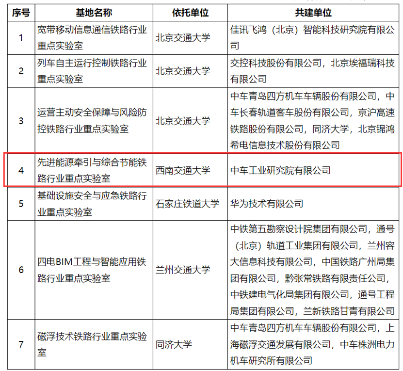 首批铁路行业重点实验室