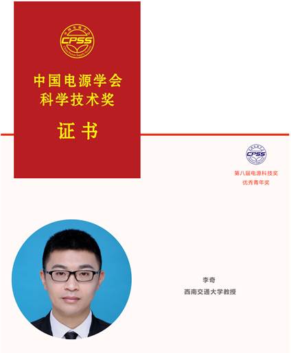学院李奇教授获第八届中国电源学会科学技术奖优秀青年奖