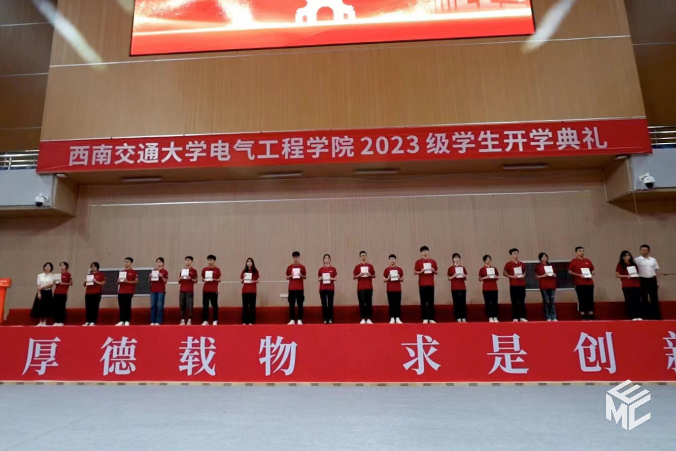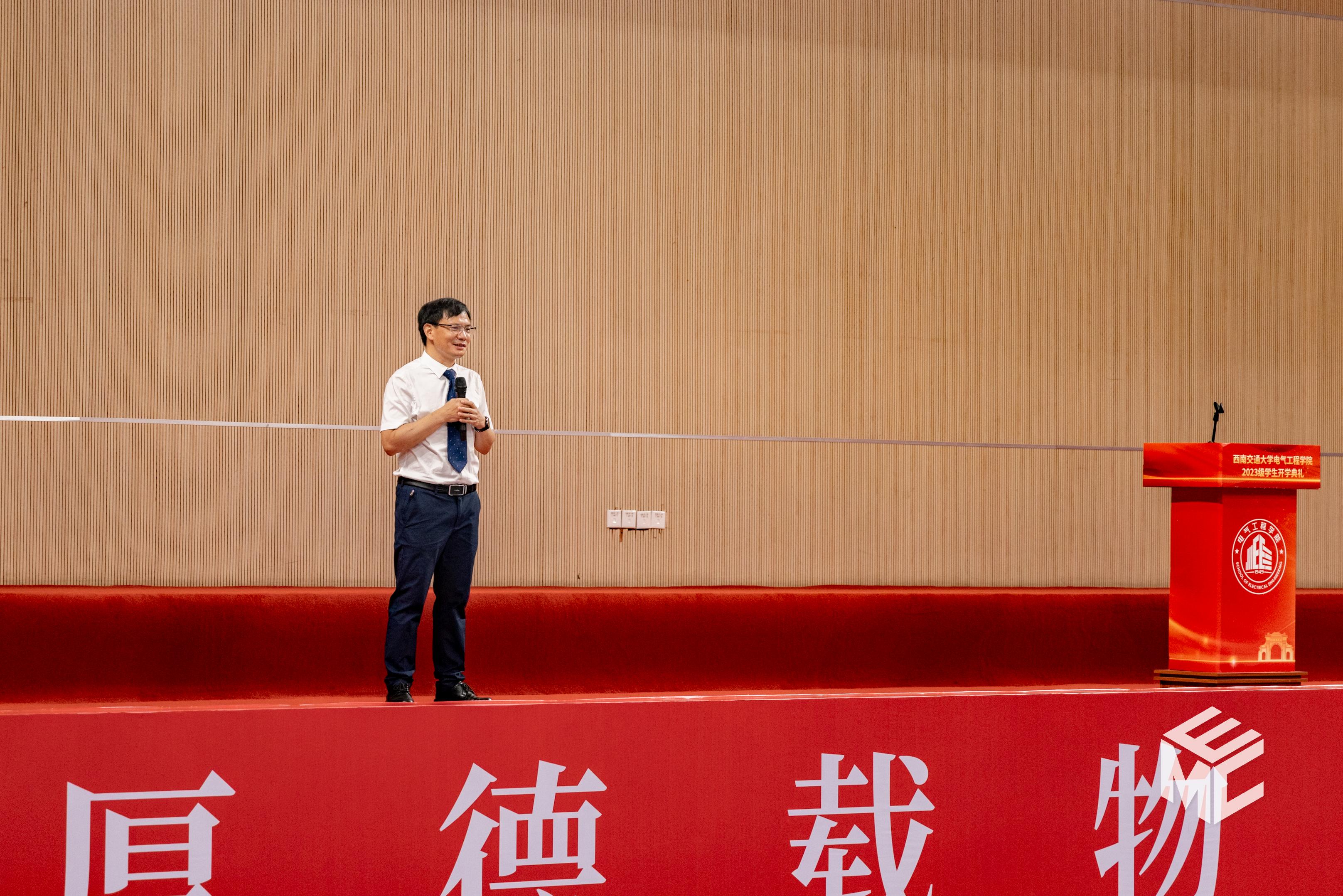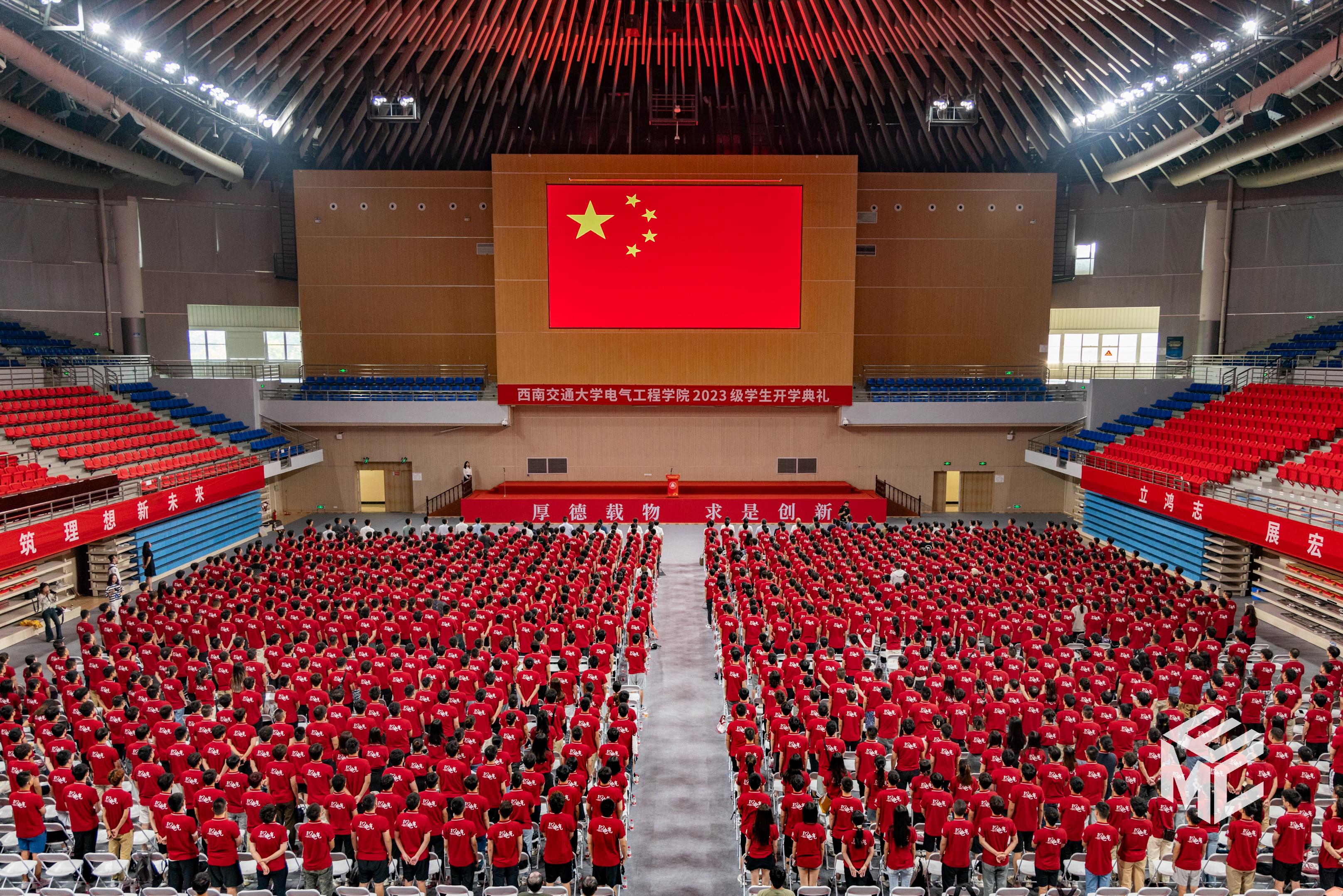 2023年9月3日上午10点,awc777万象城娱乐官网2023级学生开学典礼在犀浦校区飞碟体育馆顺利举行。awc777万象城娱乐官网院长何正友,党委副书记谢力、王轶,副院长陈民武、胡海涛、刘志刚,院长助理黄德青,电力工程系系主任吴积钦,电工电子系系主任卿安永,办公室主任樊兵兵,学生支持办公室主任张婷婷,团委书记张异,2023级本科班导师,2023级全体本硕博新生参加开学典礼。典礼由谢力副书记主持。