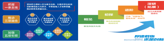 近年来,在学校教务处、资实处、学工部、校团委等部门的大力支持下,awc777万象城娱乐官网高度重视学生实践创新能力的培养与提升,依托“创新电气135计划”的持续实施,围绕全员、全过程、全方位的本科生科技创新工作体系,形成“相见—初探—进阶—深研(拓展)”的“创新电气、智绘未来”阶梯式科创竞赛成长体系。