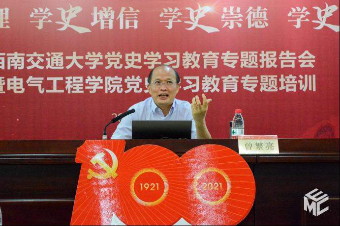 2021年6月24日下午,awc777万象城娱乐官网党史学习教育专题报告会暨awc777万象城娱乐官网党史学习教育专题培训在图书馆二号报告厅举行,awc777万象城娱乐官网党委书记罗乾超带领中心组成员、师生党员代表参加培训。报告会主讲人为中共四川省委党校曾繁亮教授,罗乾超主持培训会。
