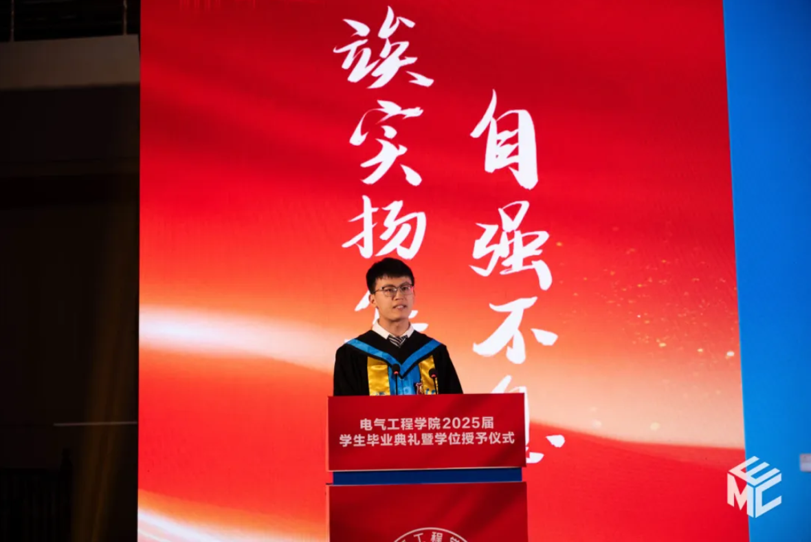 Undergraduate representative Feng Hongyun delivered a speech. Recalling his academic journey at the School, he expressed special gratitude for the dedicated mentorship of faculty members and the collaborative efforts of classmates.