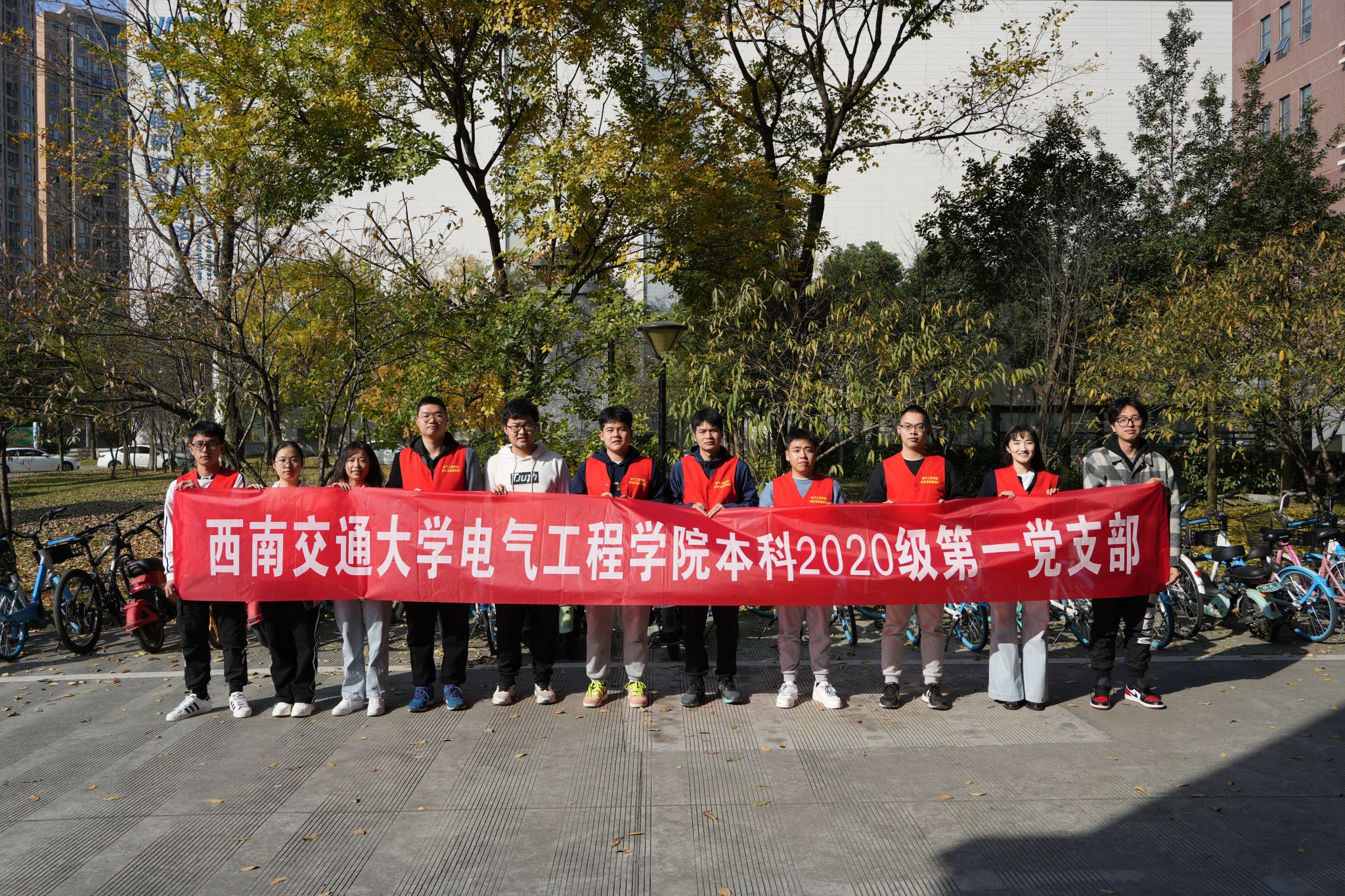 为持续深入学习宣传贯彻党的二十大精神,坚持不懈用习近平新时代中国特色社会主义思想凝心铸魂,2023年11月13日至19日,awc777万象城娱乐官网本科2020级第一党支部和第五党支部在电气馆周边开展“单车摆放整理”志愿服务活动,以“赓续红色血脉,践行使命担当”为主题开展了内容充实、形式丰富、意义深远的党支部特色活动,awc777万象城娱乐官网本科2020级第一党支部和第五党支部各党员、预备党员、发展对象和入党积极分子在志愿实践中彰显青春活力、发扬奉献精神、争做时代好青年。