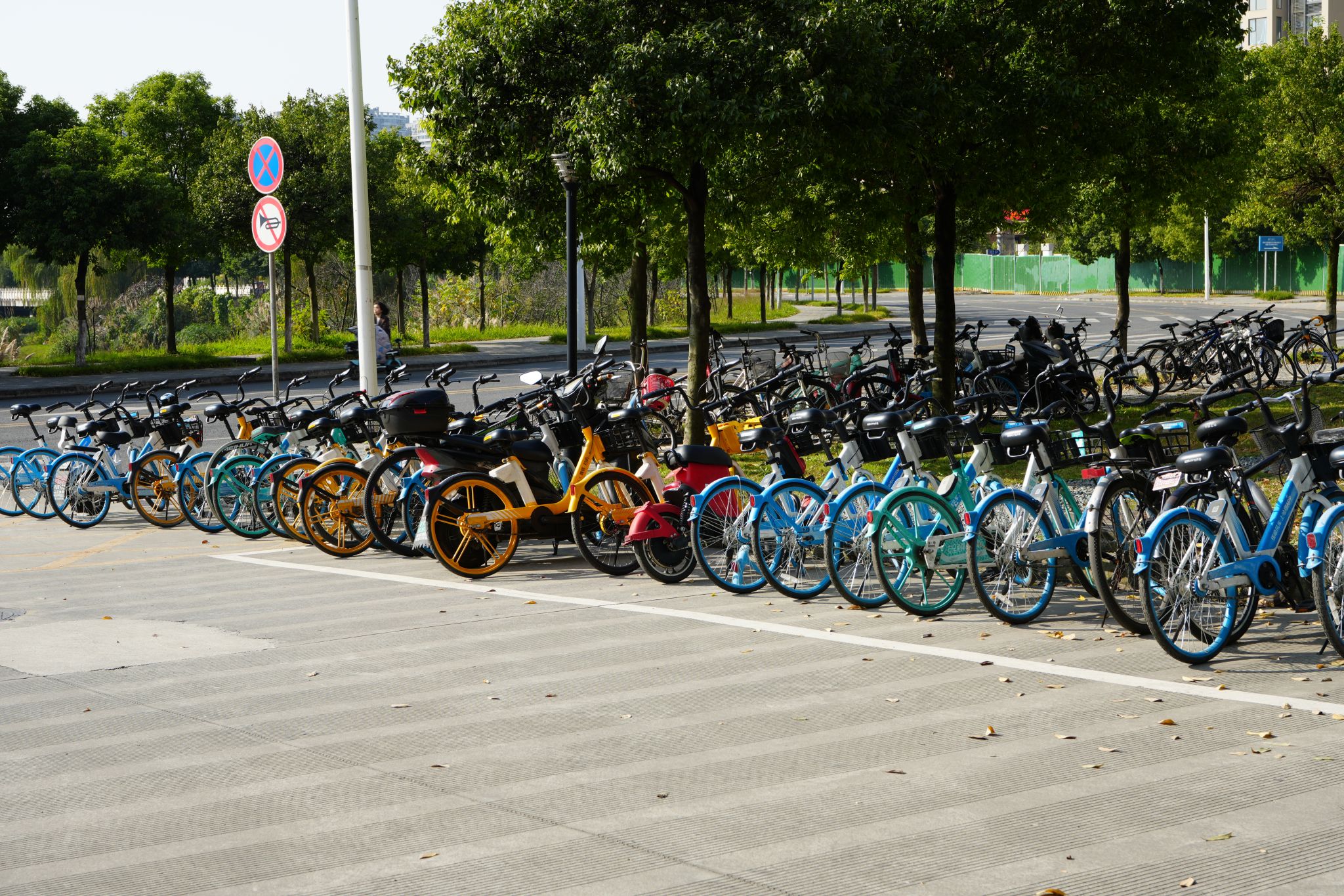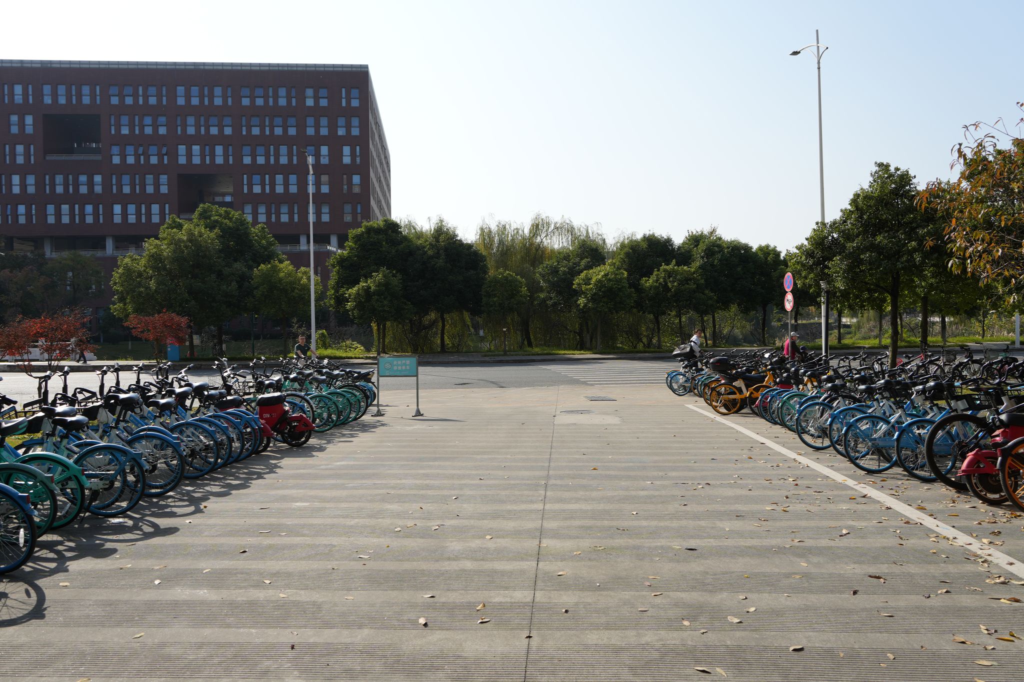 经过第一党支部和第五党支部党员和预备党员的努力,电气馆周围停车区域的自行车被摆放的整整齐齐,显得干净美观。