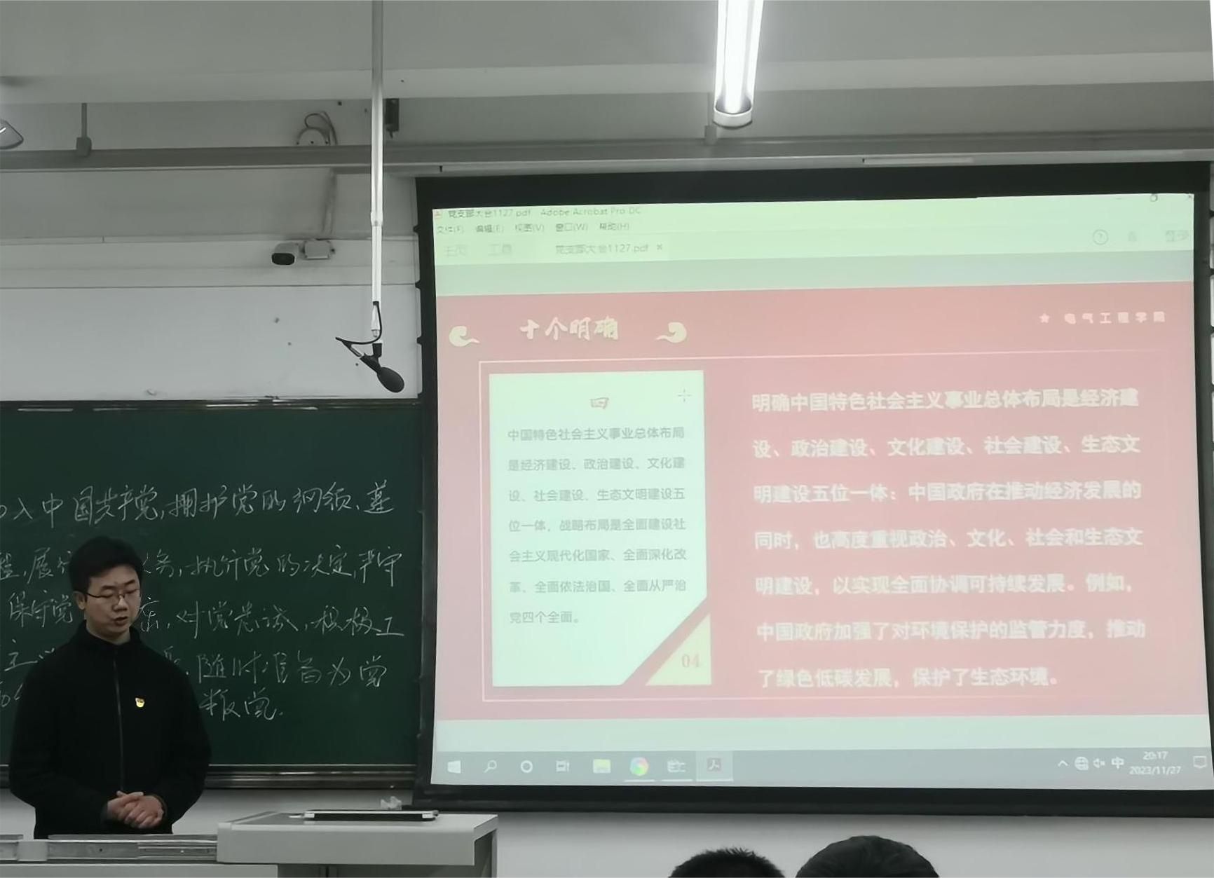 为深入学习宣传贯彻党的二十大精神,推动习近平新时代中国特色社会主义思想深入人心,更好发挥理论统一思想、凝心聚力的作用,把专业知识与支部建设工作相结合,做到理论联系实践,202310-11月,电气本科2020级第二党支部组织34党员同志开展了“青春心向党,筑梦新征程”主题党日活动。