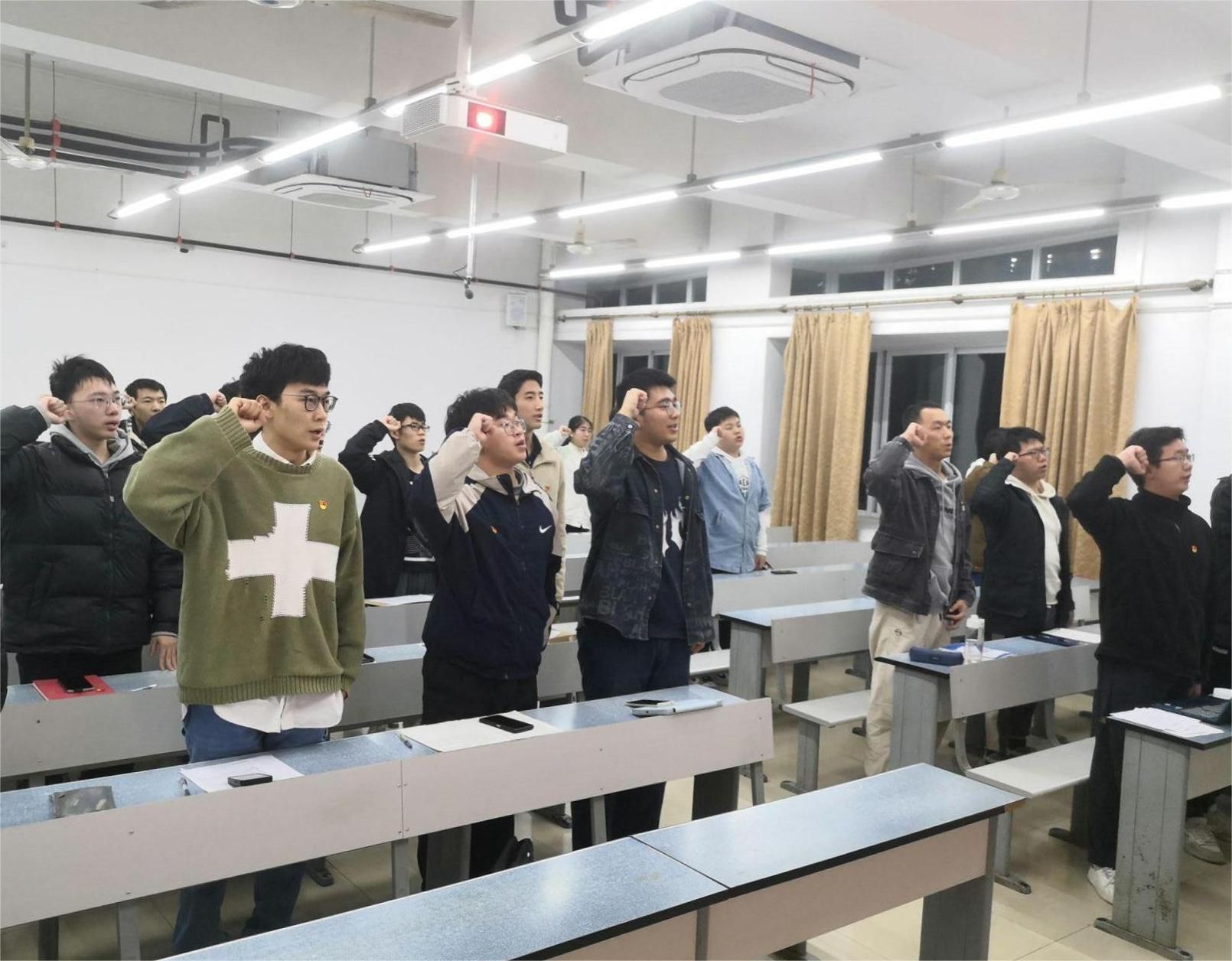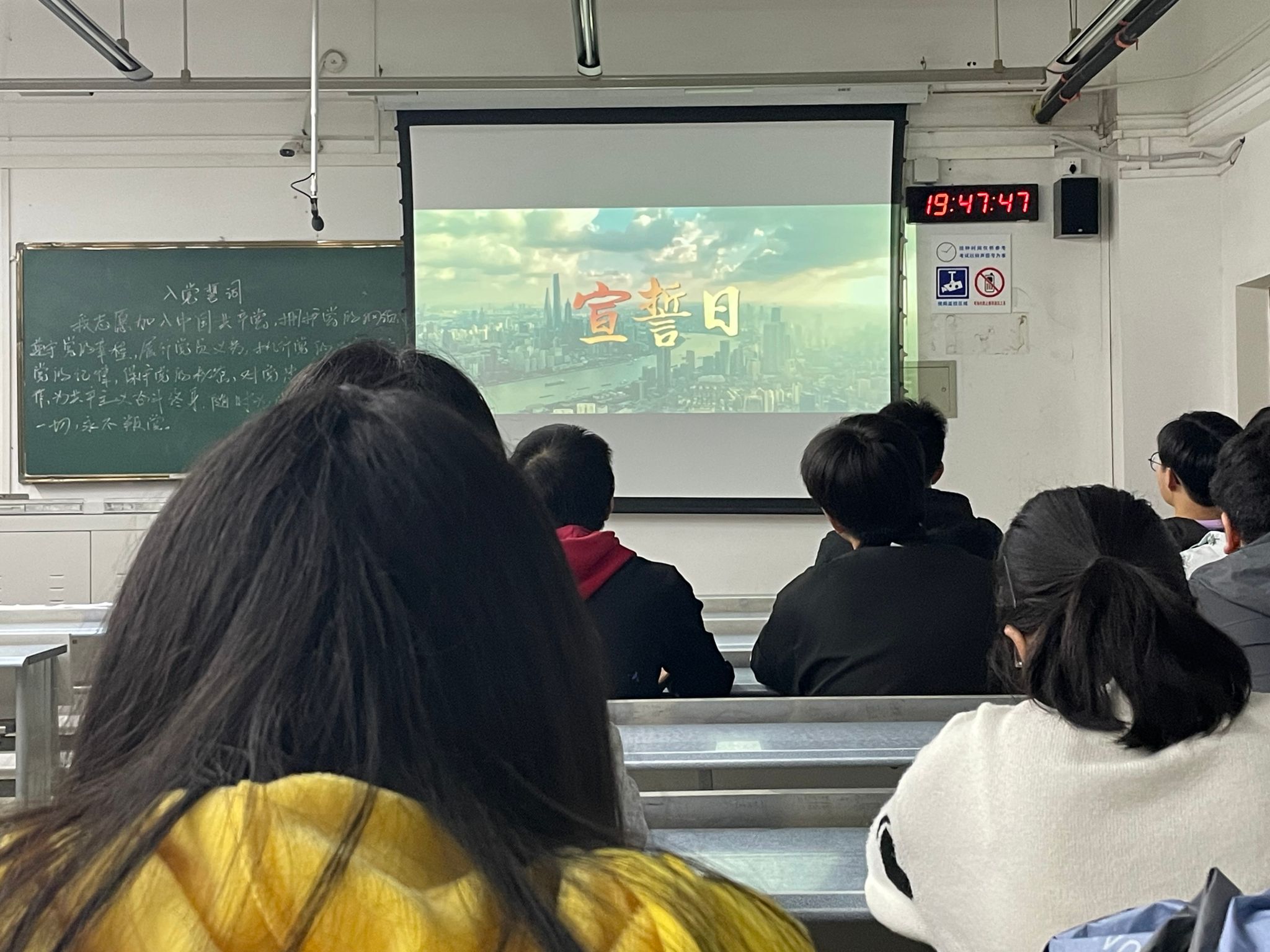 面向鲜红的党旗,支部书记官声强同志作为领誓人,带领新老党员一起紧握右拳,庄严肃立,重温了入党誓词。宣誓后,全体党员同志共同观看了中国一大纪念馆原创微电影《宣誓日》,一同和视频中的优秀共产党员感受信仰的力量,踔厉奋发,勇毅前行。