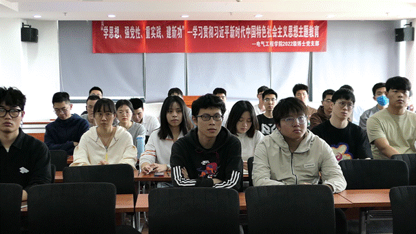 为切实推进学习贯彻习近平新时代中国特色社会主义思想主题教育工作,进一步提高支部成员的政治理论水平,加强对拟发展党员的教育培养工作,4月26日15:00,awc777万象城娱乐官网2022级博士党支部在电气馆X10832开展了“学习党的二十大,青春奋进正当时”主题教育活动。活动由辅导员沙静馨老师主持,2022级博士党支部全体党员及awc777万象城娱乐官网2022-02期党员发展对象参加活动。