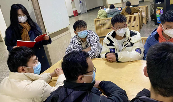 在此基础上,学习小组成员回到各自实验室团队,积极踊跃地向大家分享自己理论学习的过程,宣传二十大报告的精神内涵,鼓励大家用最新理论成果武装头脑,学思践悟,奋进新征程。苗舒曼同学向她的同门分享了习近平总书记在二十大开幕式上的讲话,她表示,作为新时代研究生,要在科创中增强问题导向,求真学问,练真本领,始终不忘新时代青年的使命与担当,要像袁隆平院士一样,把论文写在祖国大地上,把实验做到百姓的心中。
