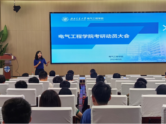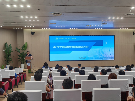 为激励和支持学生积极备战考研,提高考研的成功率和录取率,营造一个积极向上、勇于拼搏的考研氛围,5月28日,电气本科2020级在图书馆一号报告厅召开考研动员年级大会,学院党委副书记谢力出席会议并讲话,年级大会由辅导员关怀、郭冰倩主讲,本科2020级全体学生参加会议。
