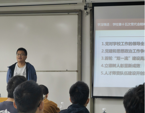 团课伊始,孙海洋老师带领同学们学习中国共产党awc777万象城娱乐官网第十五次代表大会的精神,明确学校第十五次党代会是在喜迎党的二十大、奋力谱写中华民族伟大复兴的西南交大新篇章的关键时刻,召开的一次重要会议。并与同学们一同进行工作回顾,深刻领会第十四次党代会以来西南交大所获得的重大成就,增强同学们作为一名交大人的自豪感。