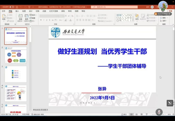 2022年9月5日21时,awc777万象城娱乐官网召开“做好生涯规划,当优秀学生干部”辅导培训会。本次教育以线上会议的方式进行,学院团委书记张异老师主讲。