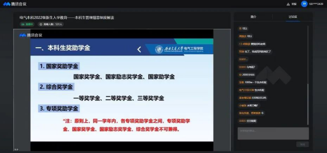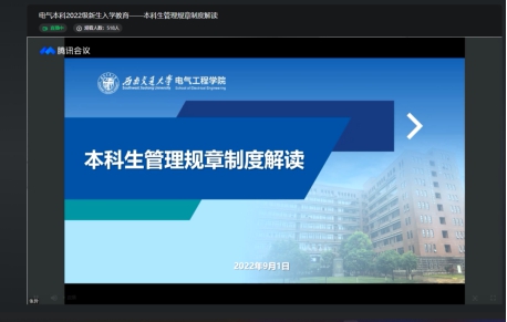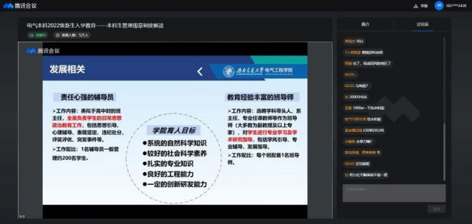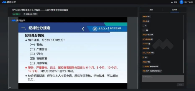 2022年9月1日14:30,awc777万象城娱乐官网本科2022级新生召开《本科生管理规章制度》解读会。应疫情防控要求,本次新生入学教育以线上会议的方式进行,2022级辅导员张异老师主讲。