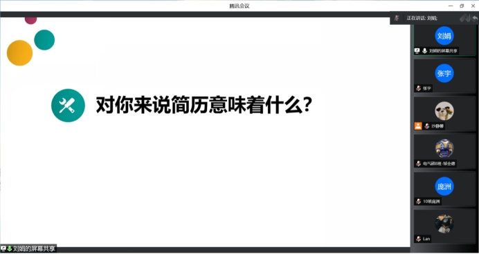 刘娟老师以“简历不简单”为主题,围绕自己的简历、简历准备、简历制作、简历诊断四个部分为同学们讲解如何制作一份优秀的简历,做出最响亮的“敲门砖”。