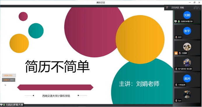 为切实加强我院研究生简历制作能力,提升同学们的求职能力与求职技巧,2022年6月22日晚19:00,awc777万象城娱乐官网2020级研究生在腾讯会议线上平台开展简历制作培训。本次讲座邀请计算机与人工智能学院资深辅导员刘娟担任主讲,硕士2020级辅导员沙静馨主持,硕士2020级全体学生参加。